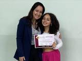 Uma das meninas se despontou com interesse e assiduidade e foi contemplada com o livro Descubra seus Pontos Fortes.
